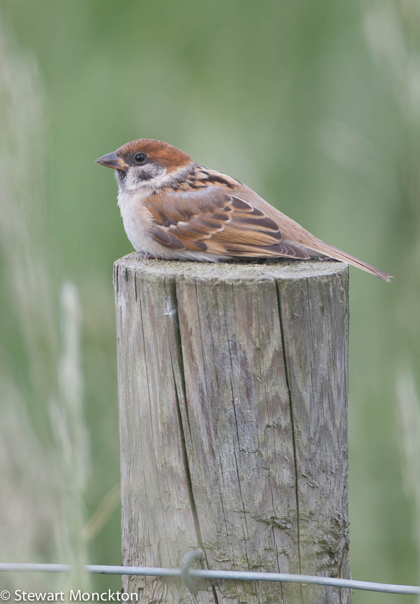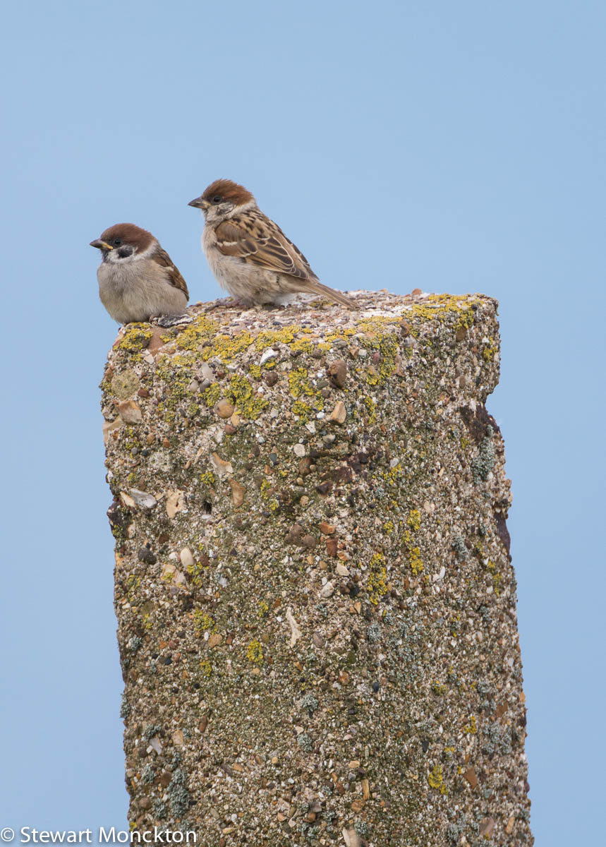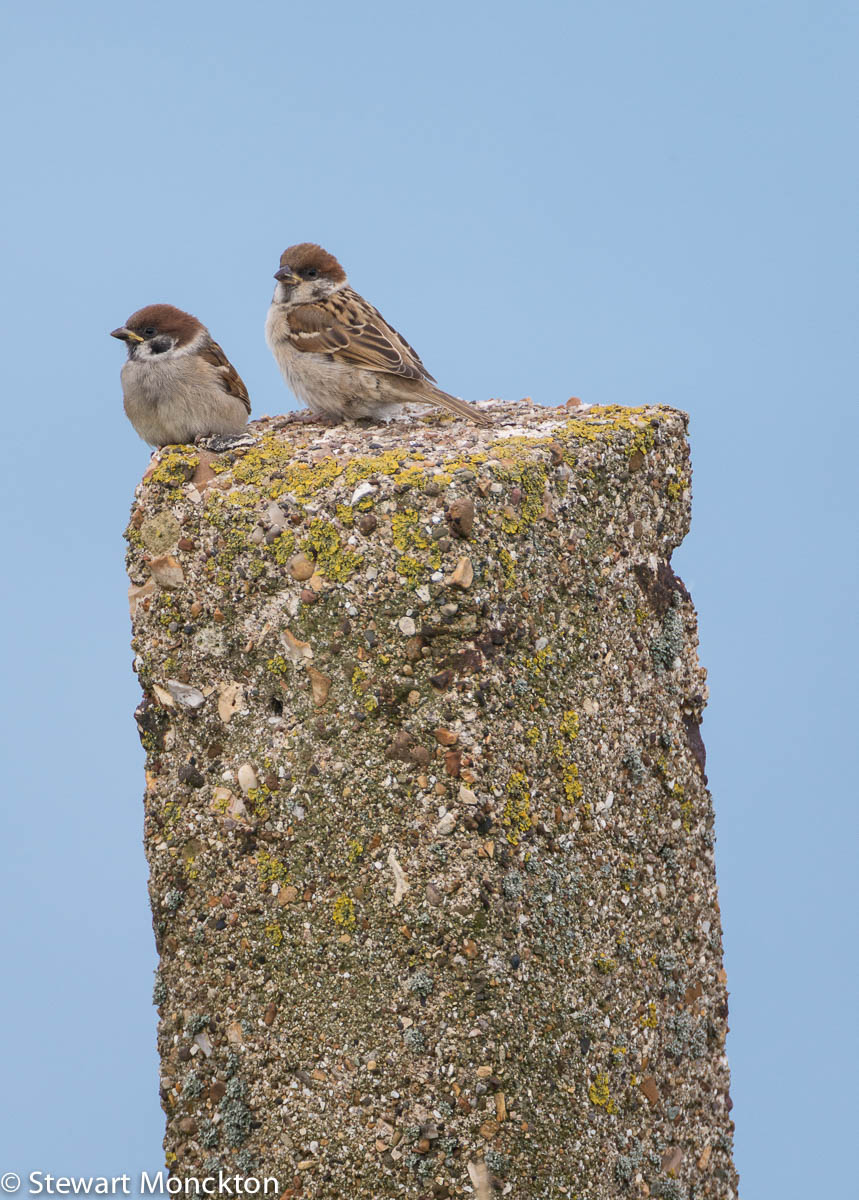 The fact that Tree Sparrows are common on the grasslands at the top of the cliffs is a good indication that the 'tree' in their name is not really accurate - some sources suggest that it is just an alternative to 'house' - meaning that Tree Sparrows are more likely to be found in away from human habitats than their close relative the 'House Sparrow'.