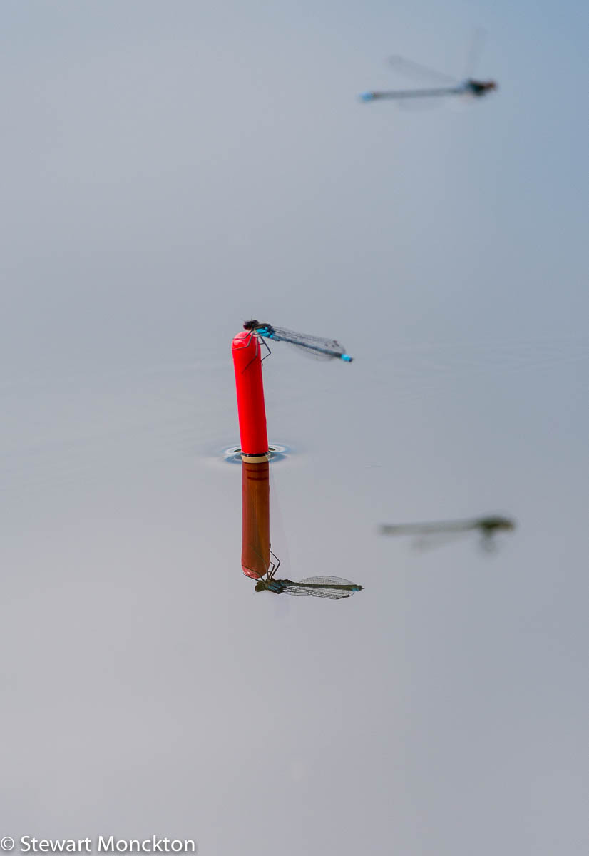 I was amused to watch these damselflies, which I think are Blue Tailed Damselflies, using the floats for a resting post.