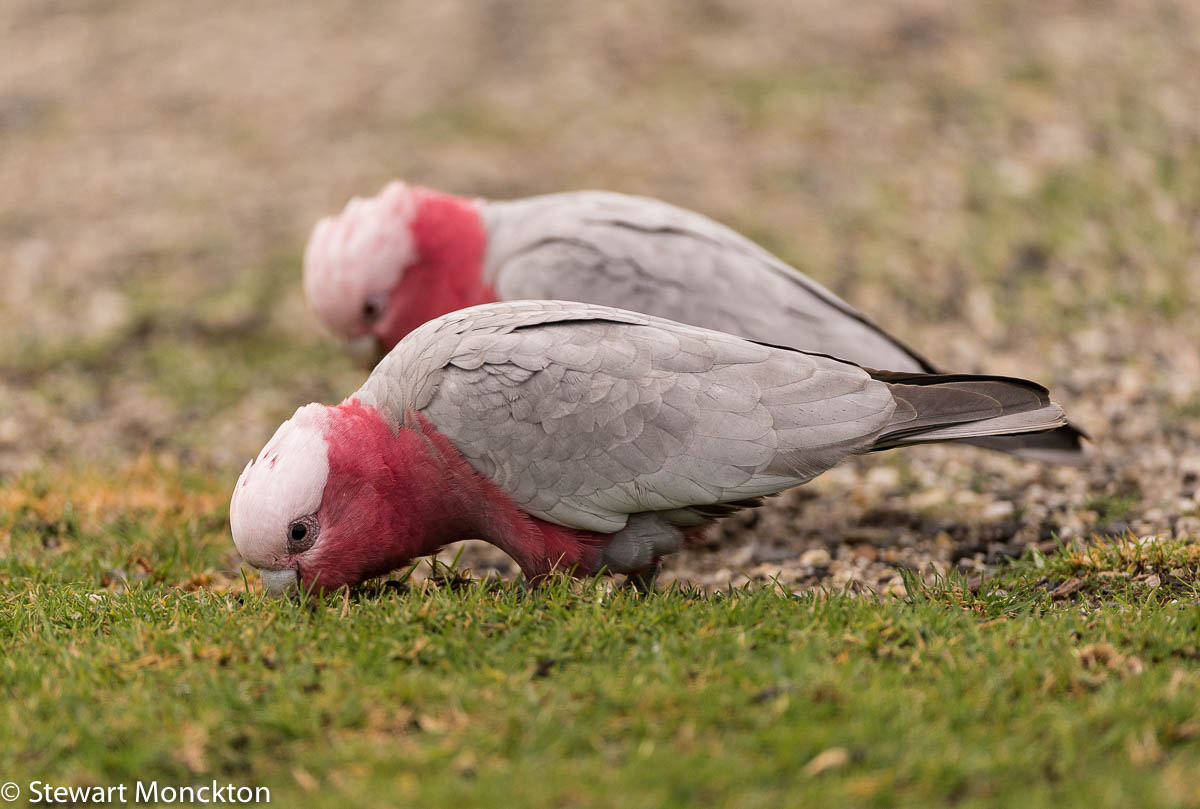 The combination of greys and pinks on this bird is, to say the least, attractive. These birds seem to be feeding on the roots or possible new germinated grass seeds.