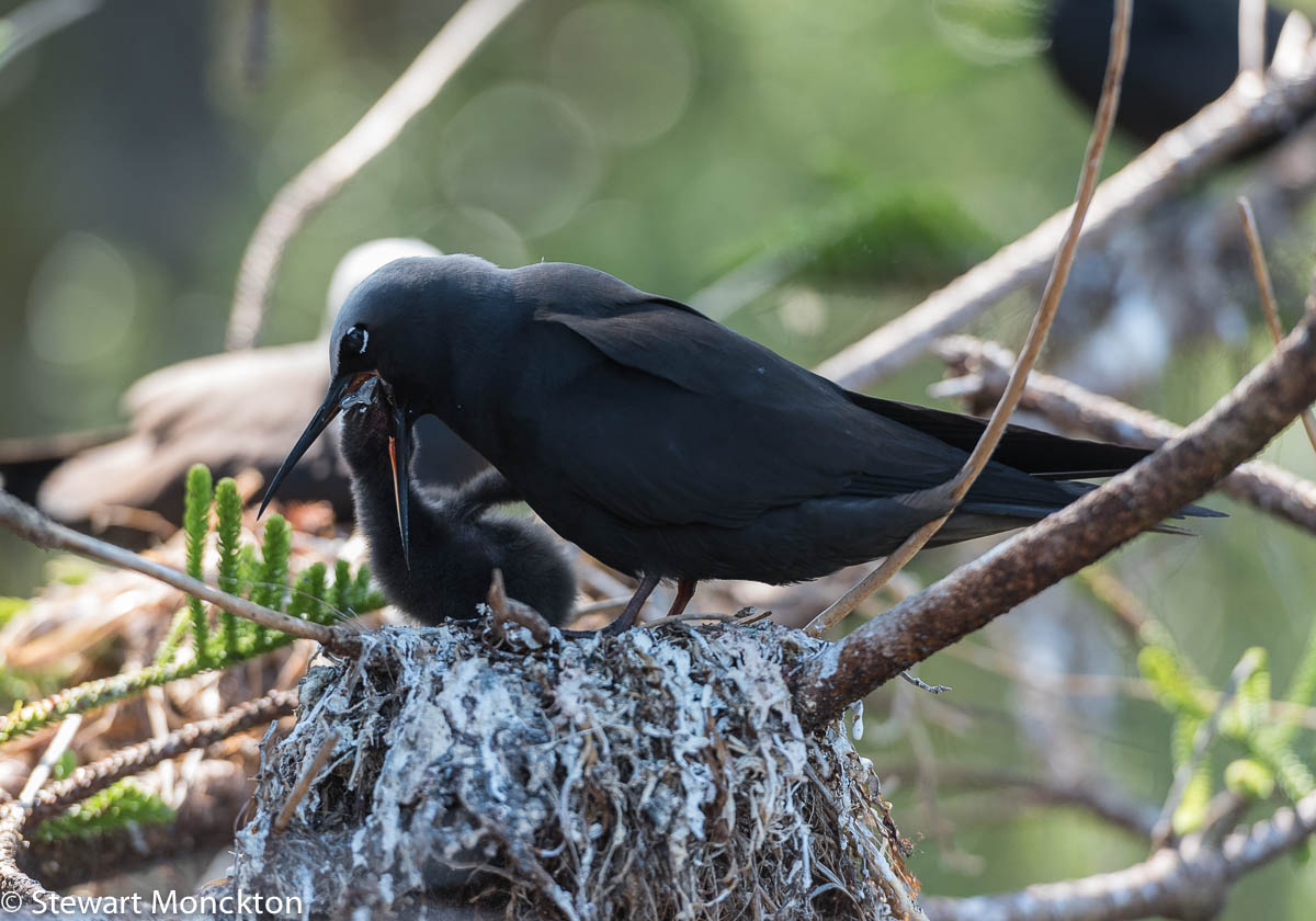 The formal name of this bird - Anous minutus - refers to the fact that it smaller than the Brown (or Common) Noddy. One of the other differences between this species and the Brown Noddy is that this species actually builds a nest, where as Brown Noddys just (at best) place a few bits and pieces on a bush and lay eggs there.
