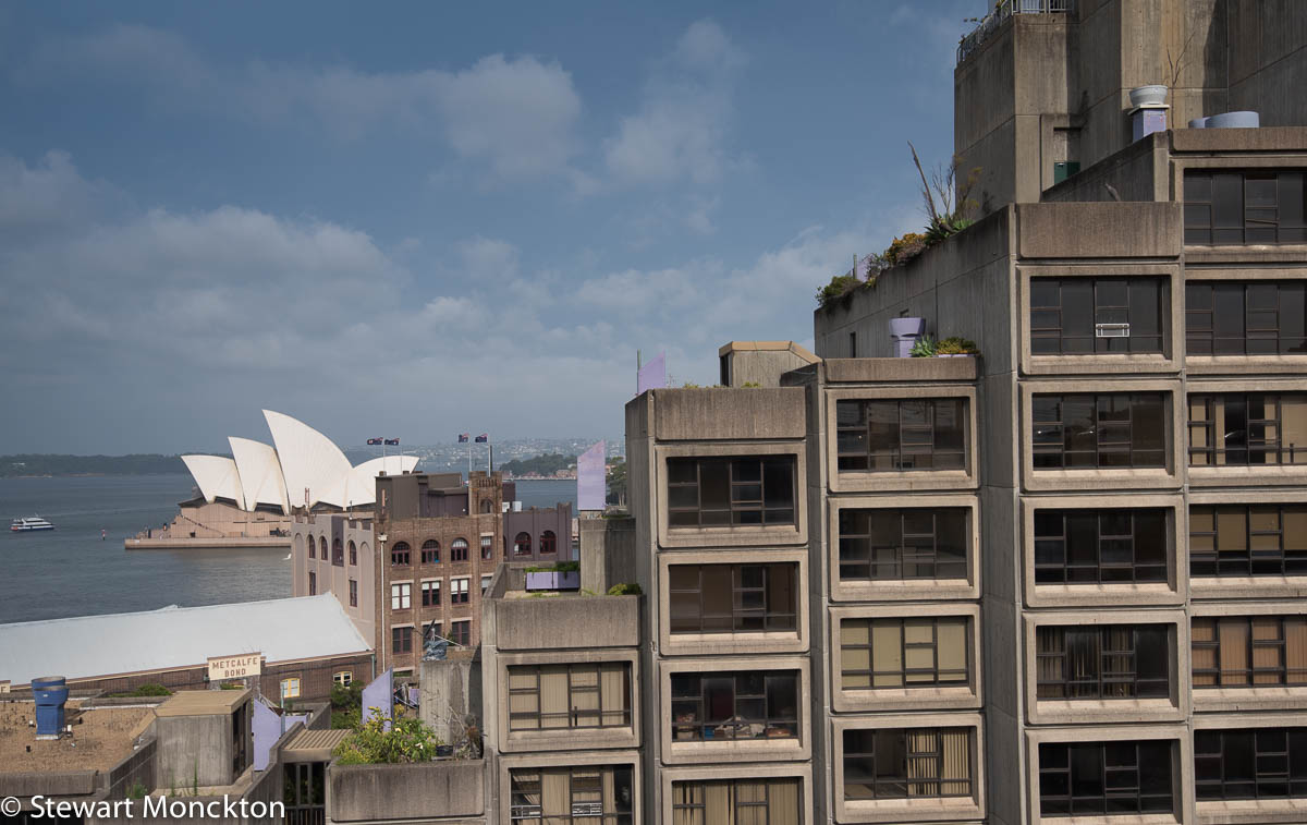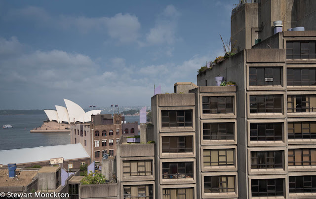 Later that afternoon I saw these layers of buildings while walking on the harbour bridge. I have never seen more 'box like' dwellings anywhere! It seems many of these units were empty - maybe people like curves! Although what first caught my eye were the three styles of building in the view.
