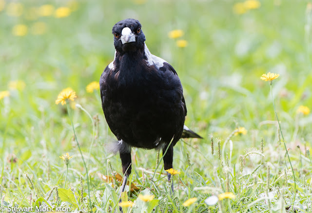 The Australian Magpie - or just Magpie - is one of the more visible birds in the area I live in. It would be rare to go for a walk and not see one, or many. There is one street near me where they are particularly common. I suspect that there may be a person who feeds them somewhere in that street.